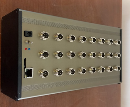 نمونه بردار INT2824R یک مبدل انالوگ به دیجیتال ۲۴ کاناله با رزولوشن ۲۴ بیت و سرعت نمونه برداری ۱ KS/S میباشد؛نمونه بردار ۲۴ کاناله همزمان با ورودی جریانی ۴ تا ۲۰ میلی امپر است که ورودی آن یک کانکتور ۴ پین نظامی از نوع GX16 است و دارای یک خروجی ۲۴ ولت و یک ورودی جریانی میباشد که از یکدیگر ایزوله هستند.