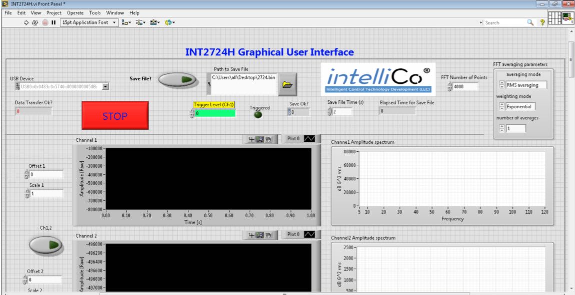 پس از نصب درایور، ماژول INT2724H بصورت Plug and Play توسط ویندوز شناسایی شده و توسط نرم افزار ارائه شده قابل استفاده می گردد. نرم افزار این ماژول شامل دو بخش نمایش گرافیکی داده های ۱۶ کانال ورودی و ذخیره داده ها در فایل *.bin می باشد. همچنین یک اسکریپت (INT2724H.m) نرم افزار MATLAB جهت خواندن فایل ذخیره شده و دسترسی به داده های ۱۶ کانال ورودی در MATLAB ارائه می شود.
